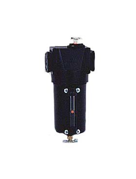 PRODUCT DESCRIPTIONS:.03 micron fiber element Pop-Up indicator indicates abnormal conditions such as plugged element or excessive flow. Critical protection requires changing element at regular intervals. Low pressure drop 6 oz. black coated metal bowl with liquid level sight Black coated Aluminum housing Manual 1/8" NPT twist drain In line modular installation